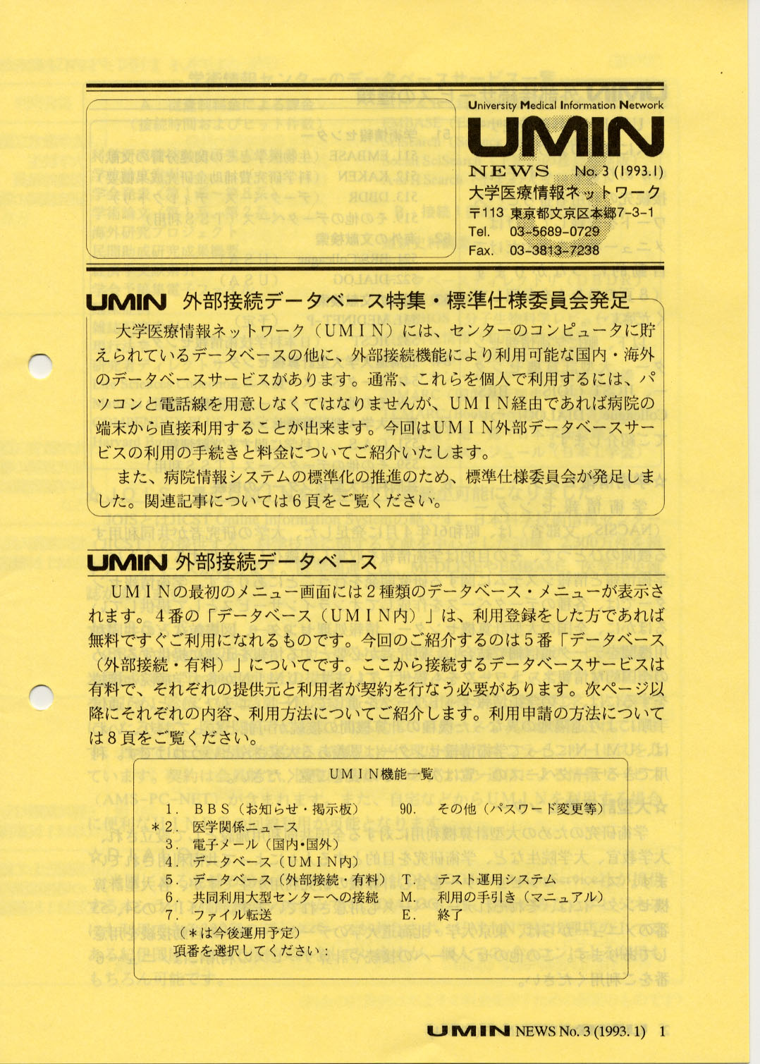 医学情報・医療情報 UMIN教育研修・普及広報活動 - 刊行物等